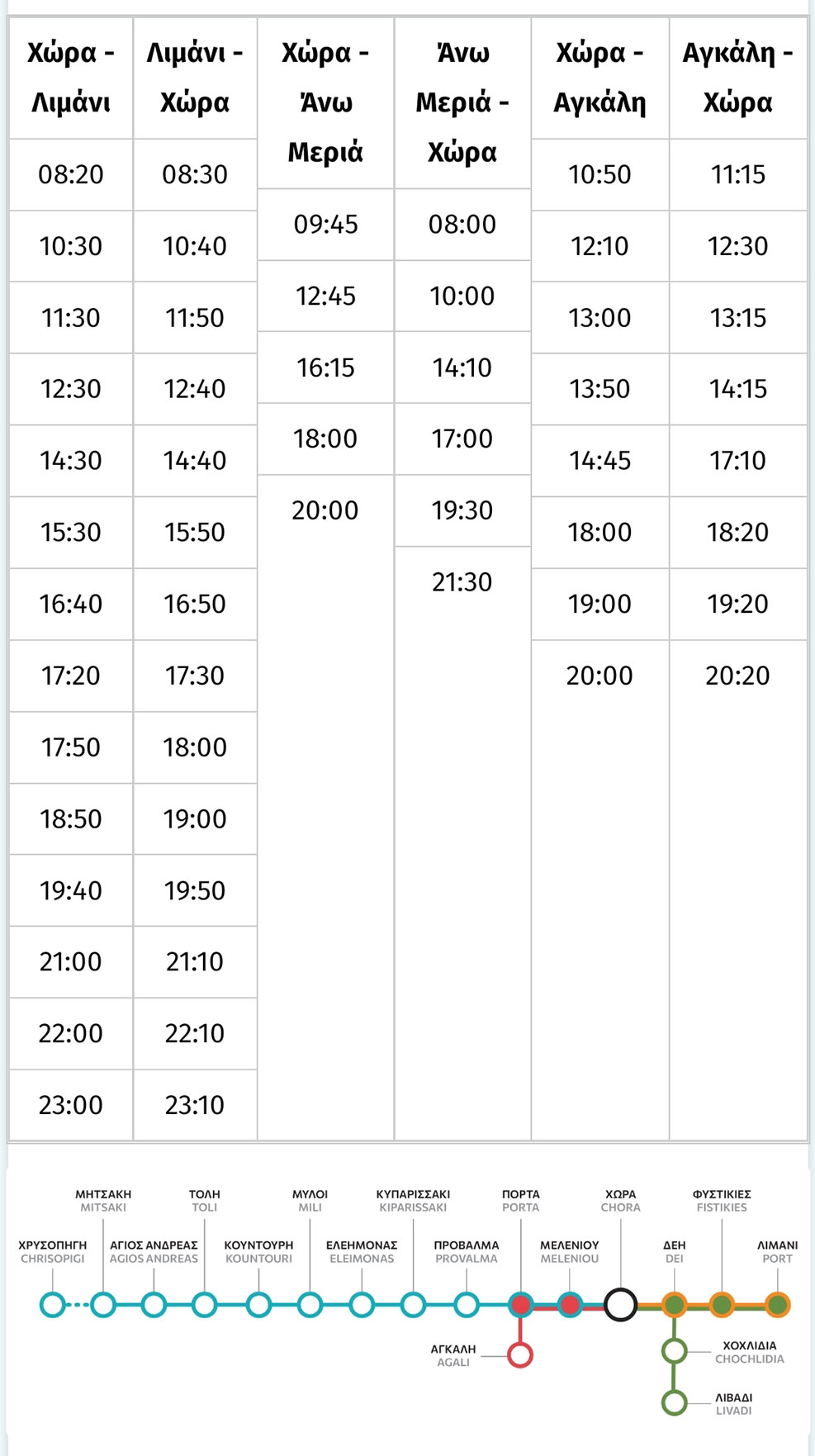 Αν είσαι πάντως κατά τις 16.30 στην Αγκάλη και 18.00 να φύγεις από εκεί με το λεωφορείο (σε αφήνει πολύ κοντά στην παραλία), προλαβαίνεις το λεωφορείο των 18.30 από Χώρα για λιμάνι.